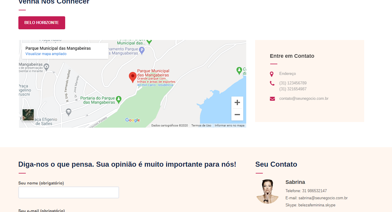 - Formulário de contato;